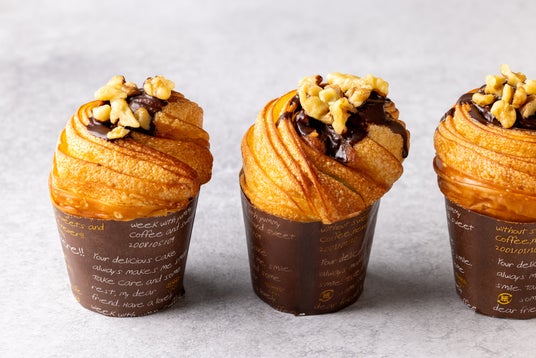 デニッシュ生地でなめらかなアーモンドクリームを包み、マカダミアナッツ、くるみ、アーモンドなど数種類のナッツをふんだんに使用した贅沢なデニッシュです。仕上げには、チョコレートとナッツをトッピングします。口当たりまろやかなチョコレートの甘みとともに、ふわふわのデニッシュと香ばしいナッツのザクザクとした食感をお楽しみください。