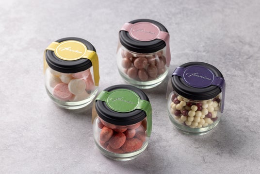 いちごとバニラのギモーヴ、ストロベリー アマンディーヌ、ホワイトチョコレートとラズベリーのパールチョコレート、ソイチョコレートをそれぞれ可愛らしいスイーツジャーでご用意いたします。個性的なフレーバーは手土産にも最適です。