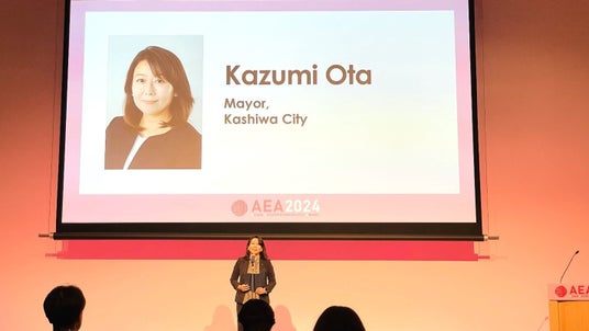 今回のAEAは、千葉県柏市の柏の葉(Kashiwa-no-ha)で開催されました。写真は千葉県柏市長の太田和美(Kazumi Ota)氏です。