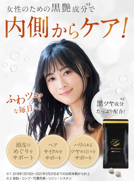 累計70万本の販売実績を誇る女性用育毛剤 Hairmore(ヘアモア)シリーズからサプリメントが誕生!