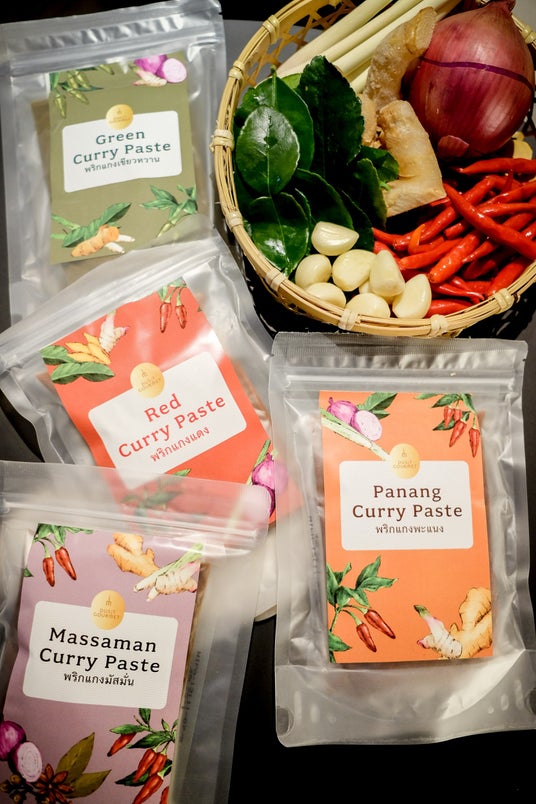 ASAI京都四条のレストランバー「ソイ・ギャン」やデュシタニ京都の「Kati」の人気メニューである本格タイカレーに使用しているカレーペーストを、ご自宅でもお楽しみいただける商品化しました。当ホテルグループの旗艦ホテル、デュシタニ・バンコクのシグネチャータイレストランのオリジナルレシピによって作られており、より香りの強い唐辛子の種を使用し、粗めの食感で辛みと深みを強調していることが特徴となっています。新鮮な食材を生かし、香ばしいハーブの香りが際立つ、調和の取れた味わいは、まさにタイ独特の世界観を体現しています。プラントベースかつグルテンフリーのため、幅広い方々にお召し上がりいただくことができ、「グリーンカレー」、「パネーンカレー」、「マッサマンカレー」、「レッドカレー」の全4種類があります。
