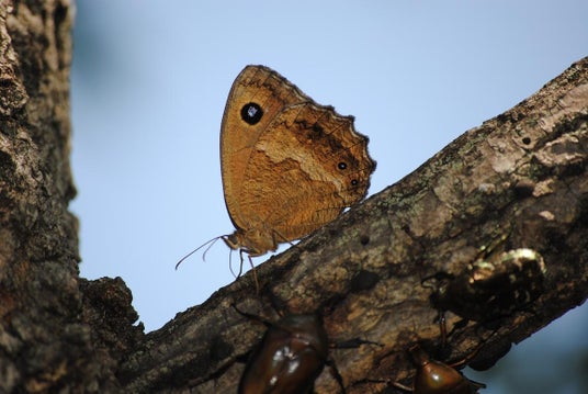 タテハチョウ科に属する蝶で、翅に蛇の目のような眼状紋を持ち、「蛇の目蝶」と呼ばれています。ススキを寄主とし、夏になると雑木林周辺の草原を飛び回ります。成虫は花の蜜や樹液に集まります。