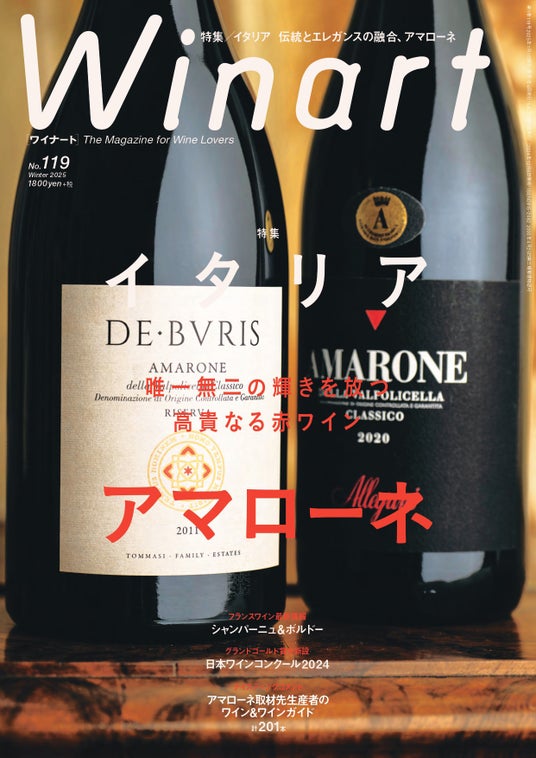 株式会社美術出版社(東京都 品川区)は、『Winart(ワイナート)』2025年冬号(119号)を2024年12月5日(木)に発売。巻頭特集はイタリアの唯一無二の赤ワイン、アマローネ。今年で20回目の「日本ワインコンクール」にて金賞を受賞したワインの紹介、ボルドーの現地取材記事、有名シャンパーニュメゾンのこの冬おすすめのアイテムなども掲載。
