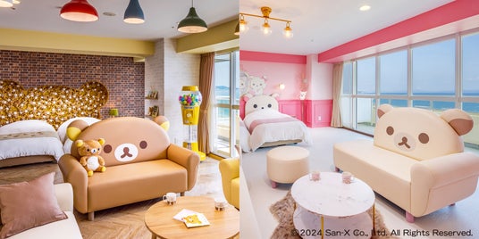 サンエックス株式会社(本社:東京都千代田区、以下 サンエックス)は、神奈川県・三浦市のホテル「マホロバ・マインズ三浦」にある「リラックマルーム」「コリラックマルーム」宿泊者限定特典のオリジナルぬいぐるみが2025年2月3日(月)より一新されることをお知らせします。新しいぬいぐるみは、宿泊者とお揃いの館内着を着たリラックマやコリラックマと、客室と同じソファのぬいぐるみがセットになったデザインです。「リラックマルーム」「コリラックマルーム」に宿泊し、リラックマたちと同じ館内着を着て、同じソファに座って、ぜひ記念撮影をしてみてください。
