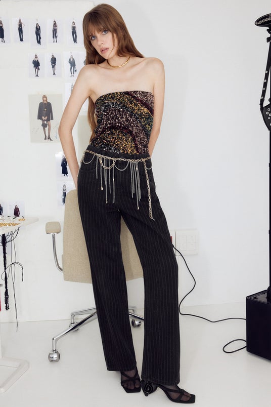 本コレクションには、ホリデーシーズンを通して活躍する魅力的なアイテムが揃っています。ジャカードドレス、オーバーサイズブレザー、マルチカラーのスパンコールトップスやスカート、ピンストライプのダークジーンズ、さらにかかとにDesigualのロゴが刻まれたサンダルなど、まさに華やかな社会的イベントで輝きを放つルックが揃っています。