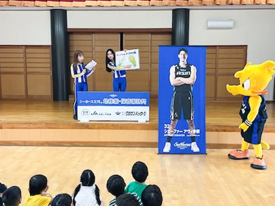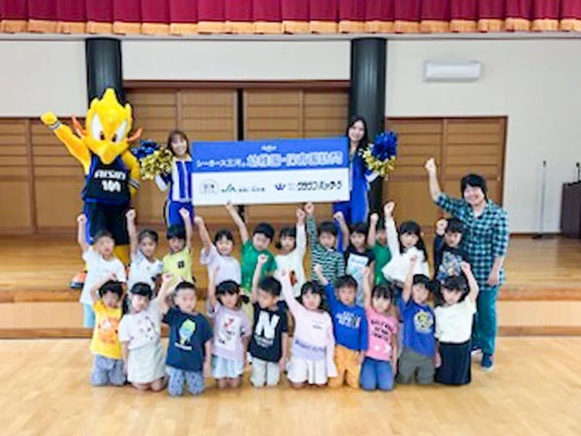 2024年10月31日(木)、シーホースくんとSuper GirlsのMIYUU、SAHOが恵保育園(西尾市)を訪問し、園児の皆さんと一緒にクイズやダンスを楽しみました。