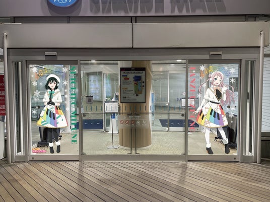 デックス3階の入り口には、ニジガクメンバーの装飾が施されたウェルカムドアが登場。ニジガクメンバーが来館者をお出迎えします。