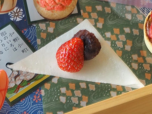 「イチゴ大福」は、従来のイチゴ大福とは一線を画し、京都名物の八つ橋をイメージしたオープンスタイルでのご提供。いちごの甘みと程よい酸味、餡子の甘みが口いっぱいに広がります。