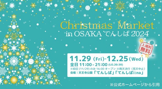 クリスマスマーケット in 大阪は、昨年に続いて今年も天王寺にある「てんしば」にて開催。今年もてんしばに20以上のフード、プレッツェル、グッズのショップが出店。音楽とイルミネーションがいっぱいの心温まるイベントです。