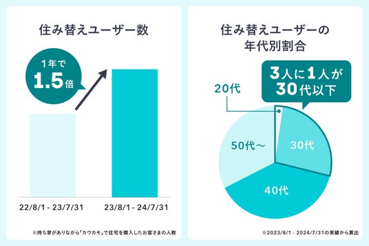 すでに持ち家がありながら「カウカモ」を通じて新たな住宅を購入した「住み替えユーザー」の人数は、前年比で約1.5倍に増加(※3)しました。