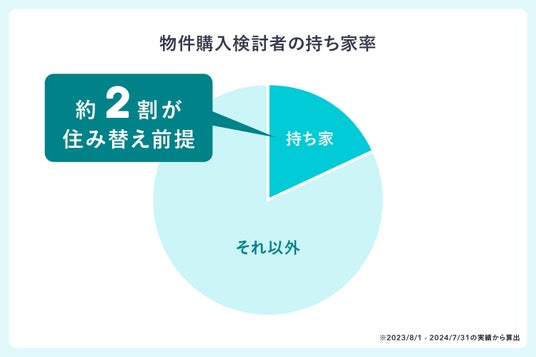 住み替え前提でツクルバにお問い合わせいただくお客さまも増加傾向にあります。直近1年間(※6)で、ツクルバにお問い合わせをいただいたお客さまの約2割がすでに持ち家であり、住み替えが前提でした。