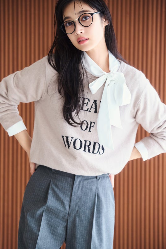 3.最旬のレイヤードはロゴニット×ボウタイブラウス