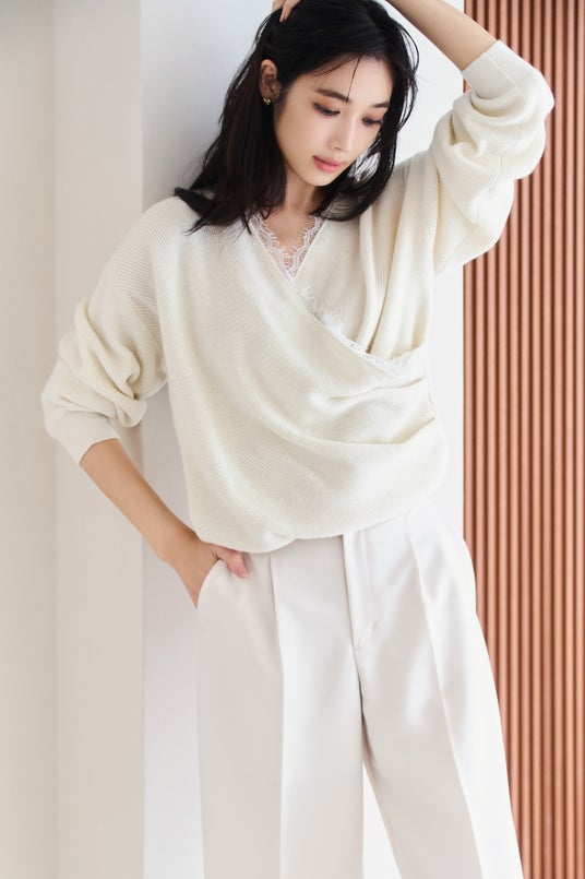 1. 瞬時にレディを気取れる配色アンサンブルニット