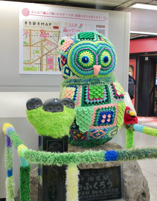 5. JR池袋駅 いけふくろう池袋駅東口方面にたたずむ待ち合わせの定番スポット“いけふくろう”。展示期間中はいけふくろうも冬の装いで、カラフルで温かな編みふくろうに変身。