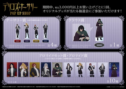 今回のイベントでは、TRUMPシリーズTVアニメ『デリコズ・ナーサリー』 POP UP SHOPの新作グッズを販売いたします。