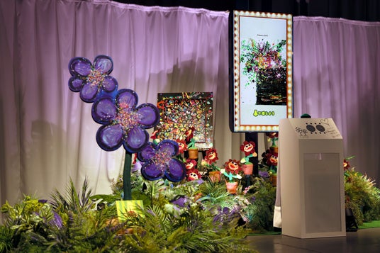 ノリさんのシリーズ作品 “Flower” の香りを実際に体験できるエリア。最新技術を駆使した“Flower”スロットはボタンをおして画面に出てきた作品にあわせて、香りが変わる!サプライズ演出も。