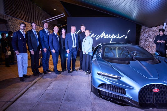 世界250台限定のハイパーカー「ブガッティ トゥールビヨン」は、日本国内への割り当てがわずか10数台という希少性を誇り、車両価格は約6.5億円にのぼる。日本国内、世界ともに完売しているという。デザインには高級時計を彷彿とさせるスピードメーターが採用され、今回のコラボレーションの深い結びつきを象徴する仕上がりとなっている。