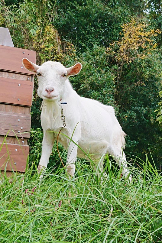 ここでは日々、農園のアイドルでありベテランスタッフでもある山羊のルルちゃんが頑張って草を食べてくれます。これは自然農法の一種で、山羊が生えている雑草を食べることで自然に除草してくれるのです。