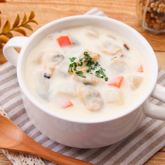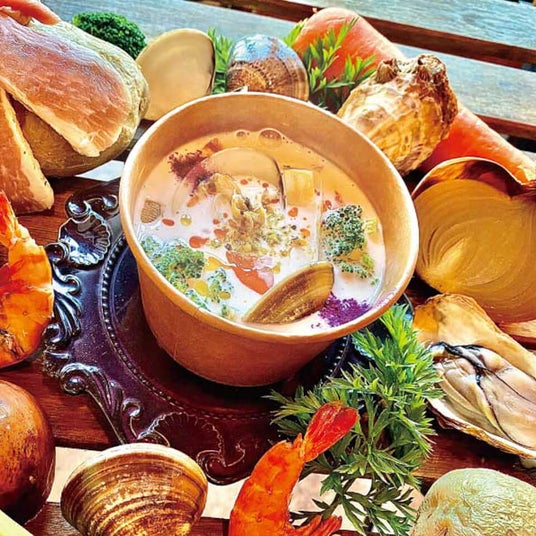 名物!カレーうどんと唐揚げのうまい店 サンビーノ貝の旨味とクリーミーでやさしいスープが絶妙にマッチする「クラムチャウダー」は、心まで温めてくれます!!