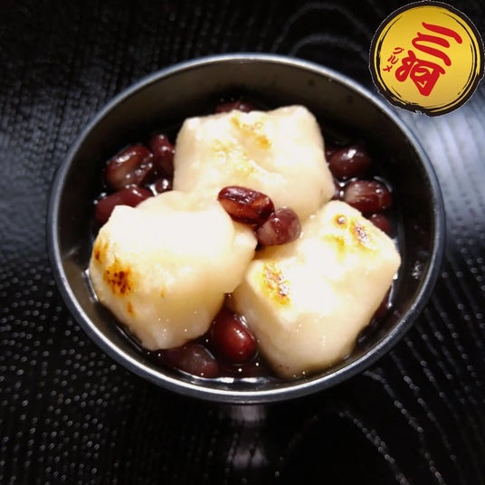 みよしや北海道産の最高級小豆と砂糖のみをじっくりコトコト煮込んだおしるこです。焼きたての餅には佐賀県産のヒヨクモチを使用しています。添加物を一切使用していない、みよしや自慢のおしるこをぜひご賞味ください。