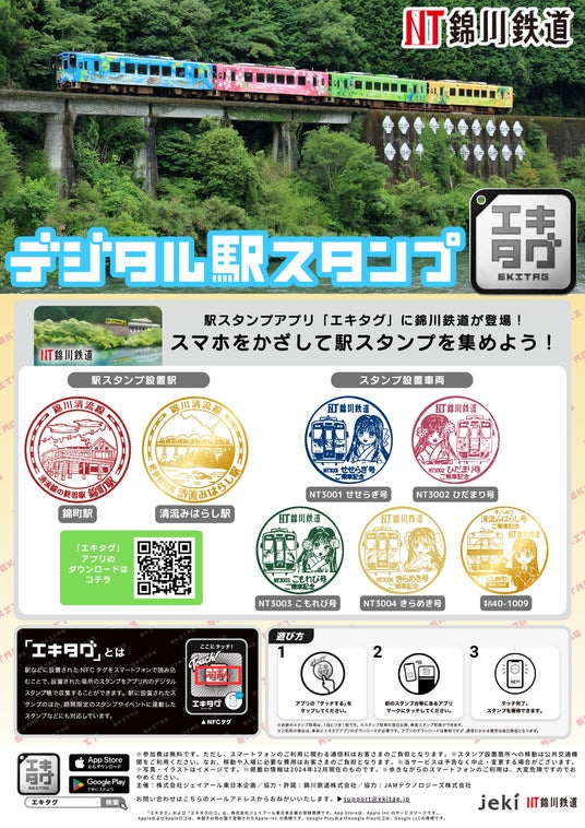 ◎株式会社ジェイアール東日本企画が提供する駅スタンプアプリ「エキタグ」では、2024年12月10日(火)より、錦川鉄道にエキタグがデビューします。