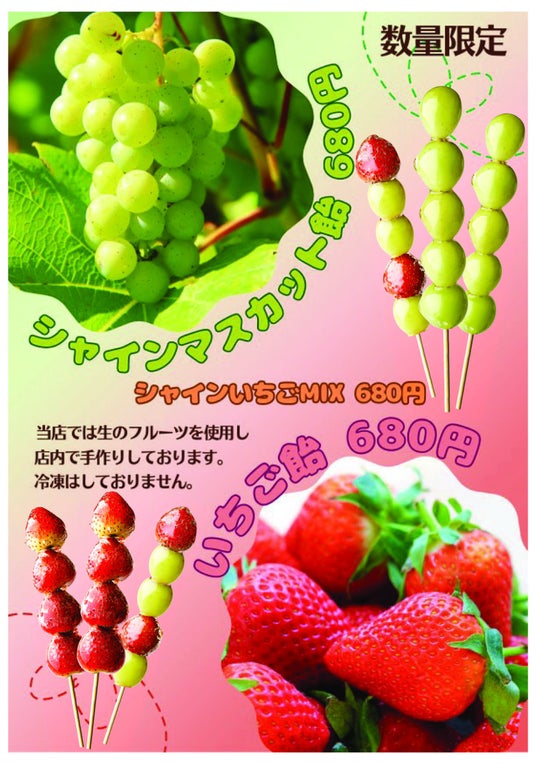 パリッパリの飴に包まれた、ジューシーなフレッシュフルーツの飴です。
