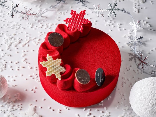 ピエール マルコリーニのオリジナルクーベルチュールを使った濃厚な「ムース ショコラ コンコルド」に「クレーム ダマンド マロン カシス」を重ねました。カカオの豊かなアロマとビターチョコレートの苦みに、カシスの酸味、マロンの風味がバランスよく調和し「メレンゲ カカオ」と「クレーム ダマンド」の歯応えが絶妙なコンビネーション。鮮やかな赤いデコレーションの上には雪の結晶を象ったオーナメント。聖なる夜を華やかに彩る、ピエール マルコリーニならではのクリスマスケーキです。