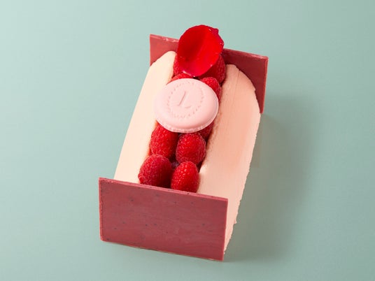 ビスキュイ・ジョコンドにフランボワーズとライチのコンフィ、バラが香るシャンティ・マスカルポーネなどを重ねた、ビッシュ・ド・ノエル。ラデュレを象徴するフレーバーであるローズ、フランボワーズ、ライチが織りなす、美しいハーモニーをぜひご賞味ください。