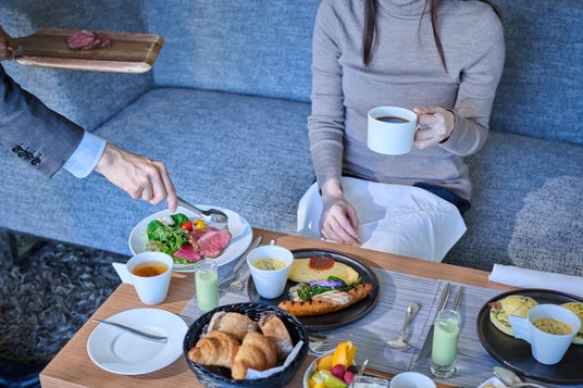 富士の天然水で入れるお茶と富士をイメージしたウェルカムスイーツ、“葉山の景色”を存分に感じていただける周辺MAP、富士山を目の前に至福のひとときを感じていただける特別なブレックファーストなど、スケープス ザ スィートだからこそ過ごせる特別な冬を感じていただけるプランです。