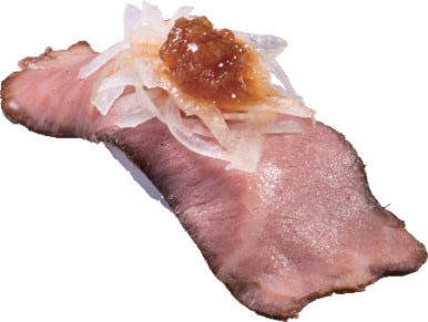 かっぱ寿司に初登場!和牛の頂点「黒樺牛(くろはなぎゅう)」 直火焼き上げ、真空調理仕上げのローストビーフ 『九州産黒毛和牛にぎり ~黒樺牛A5ランク使用~』を販売