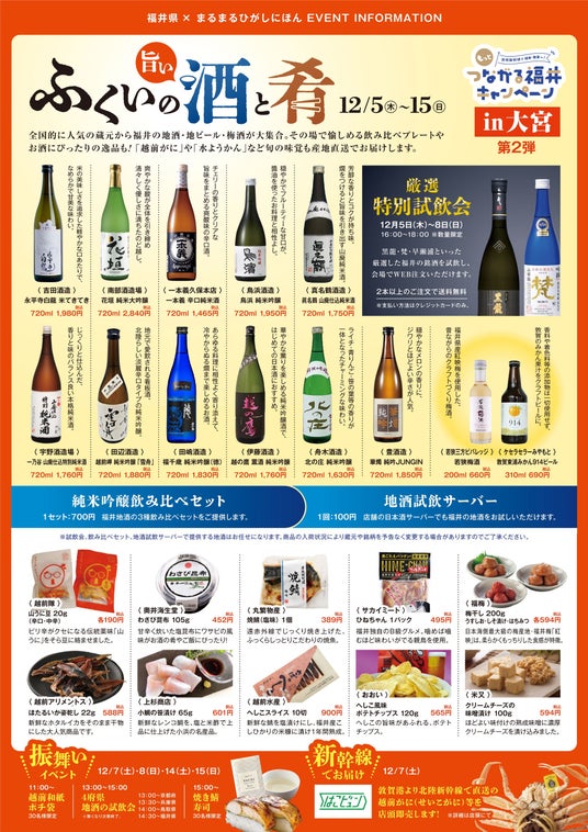 まるまるひがしにほんで「ふくいの旨い酒と肴」を開催します!12/5(木)~12/15(日)
