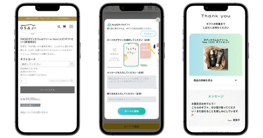 健やかで美しい皮膚を保つためのスキンケアライフスタイルを提案する敏感肌ブランドOSAJI(オサジ)を展開する、株式会社OSAJI(本社:群馬県高崎市 代表取締役:茂田正和)は、AnyReach株式会社(本社:東京都中央区 代表取締役:中島 功之祐)が提供するeギフトサービス『AnyGift(エニーギフト)』をOSAJI 公式オンラインショップにて開始いたします。