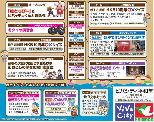 【平和堂・キリン・ブリヂストン】彦根発 笑顔いっぱいプロジェクト HKB10周年記念「3社合同イベント in ビバシティ彦根」開催!