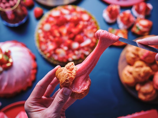 今季のコンラッド大阪のストロベリースイーツビュッフェでは、好評の体験型ビュッフェコーナーに、根強い人気を誇る定番スイーツの“シュークリーム”が、DIYでカスタマイズできる進化系スイーツとなって登場。ビュッフェカウンターで、まずストロベリー、プレーン、チョコレート、抹茶の4種類のカラフルなシュー生地からお好きなものをお選びいただき、その後、パティシエにお好みのクリームを注文してから、トッピングステーションで思い思いのデコレーションをお楽しみください。クリームは、王道のシャンティクリームやカスタードクリームに加え、新食感の「のびるストロベリークリーム」や「のびるチョコレートクリーム」もご用意。さらに、好きなだけ楽しめるビュッフェならではの魅力として、フレッシュなストロベリーをはじめ、フランボワーズやブルーベリーなどのフルーツや、クッキー、メレンゲ、マシュマロ、フィアンティーヌなど多彩なトッピングをご用意しました。