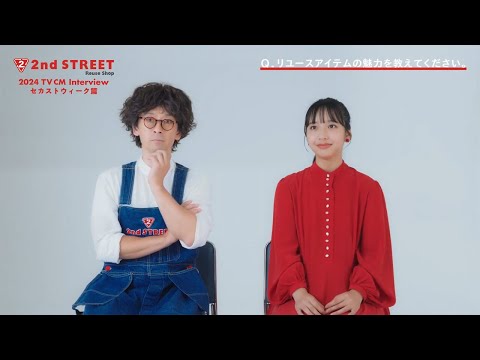 赤くきらびやかな空間で「お得なセカストウィーク始まります!!!」の掛け声とともに、「セカストウ賢一」とかわいらしいアイテムたちが大盛り上がり。キャンペーンと聞いて驚く山之内さんに対して、目玉の衣料品SALEなど、お得が盛りだくさんのセカストウィークを紹介します。「やばあ!!」と幸せな表情を見せる山之内さんに、「今がチャンスです~!」とすかさず声を掛ける「セカストウ賢一」。「セカストウ賢一」と山之内さんのコミカルなやりとりにぜひご注目ください。