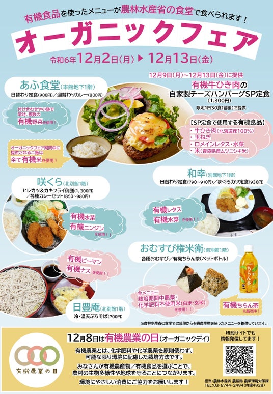 さらに農林水産省の食堂で有機食品を使ったメニューが食べられる『オーガニックフェア』が12月13日(金)まで実施中!