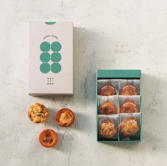 「KORO-KORO」は、小ぶりながらもフルーツやナッツ、スパイスを贅沢に使用した食べ応えのある新感覚のフィナンシェです。コロコロと可愛らしい丸い形に焼き上げ、パサつきのないしっとり感がこだわりのポイント。素材の食感と口の中に広がる香りのマリアージュをお楽しみいただけます。