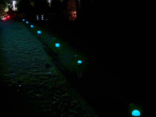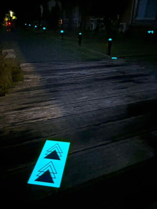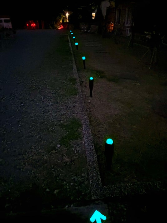 照明灯による光害(ひかりがい)の影響もない次世代型の暗闇対策で来場者の移動を補助。日中の紫外線からのエネルギーを蓄え夜間発光する高輝度蓄光技術を活用した環境負荷ゼロのユニットで、円滑な星空鑑賞に貢献。
