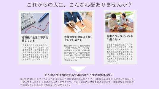 教育資金や老後資金といった主要なライフイベントに合わせた資産運用プランを提案し、具体的な運用