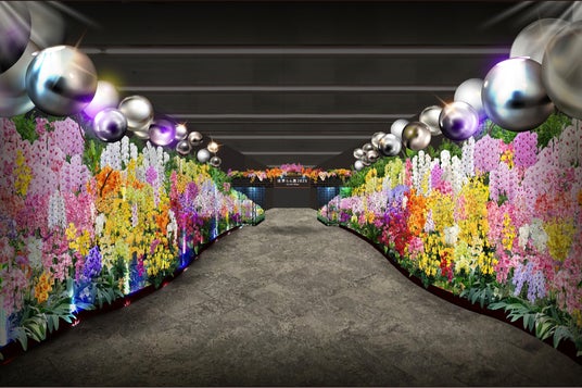 入口では10万輪の満開の蘭で彩られた「春」を思わせる半円のアーチ「オーキッド・ゲート2025」が皆様をお迎えします。ゲート抜けると、万華鏡の中を歩くような体験ができる「オーキッド・アベニュー」へ。その先に広がる「幻想蘭空間」では、柔らかな光の演出が天井に咲き誇る蘭を幻想的に照らし、新たな蘭の魅力をお楽しみいただけます。