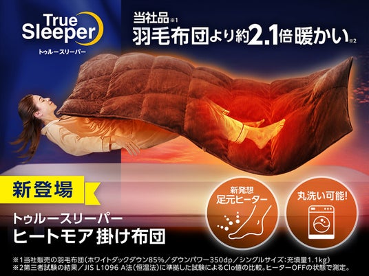 【新発想!ヒーター搭載の次世代掛け布団】冷える足元を集中的に暖める「トゥルースリーパー ヒートモア」がこの冬ついに登場!