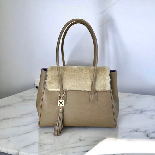 ARIANNA:フラップ付ショルダーバッグ(ベージュ、ホワイトファー)¥206,800