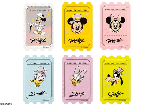 8個入ボックスは、嬉しい特典付き!まるで「ミッキーマウス」のショーチケットのようなステッカーが1枚入っています。一面ホログラムが施された白タキシード姿の「ミッキーマウス」1種に、「ミッキーマウス」の仲間たちが描かれたステッカー5種の計6種類。スマホケースに入れて持ち運んだり、スイーツと一緒に撮影するのもおすすめです。ランダムに1枚セットされていますので、どのステッカーに出会えるかお楽しみに。