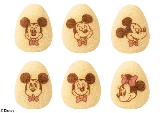 スポンジケーキの絵柄は全部で6種類。表情豊かな「ミッキーマウス」が5種類に、「ミニーマウス」が1種類ランダムに入ります。「ミニーマウス」の絵柄がでたらラッキー!お揃いのリボンをつけた2人に、食べる前から心躍りそう。