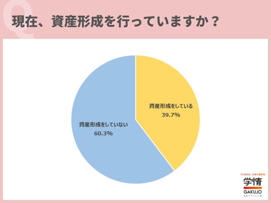 現在、「資産形成をしている」と回答した20代は39.7 %でした。「資産形成に興味がある」とした20代は8割を超えていた一方、実際に資産形成を行っている20代は約4割に留まりました。「難しそうな印象があり、実際にはまだ始められていない」「どのように資産形成をするのが良いか分からない」「リスクも伴うので、きちんと知識を習得してから始めたい」といった声が寄せられています。