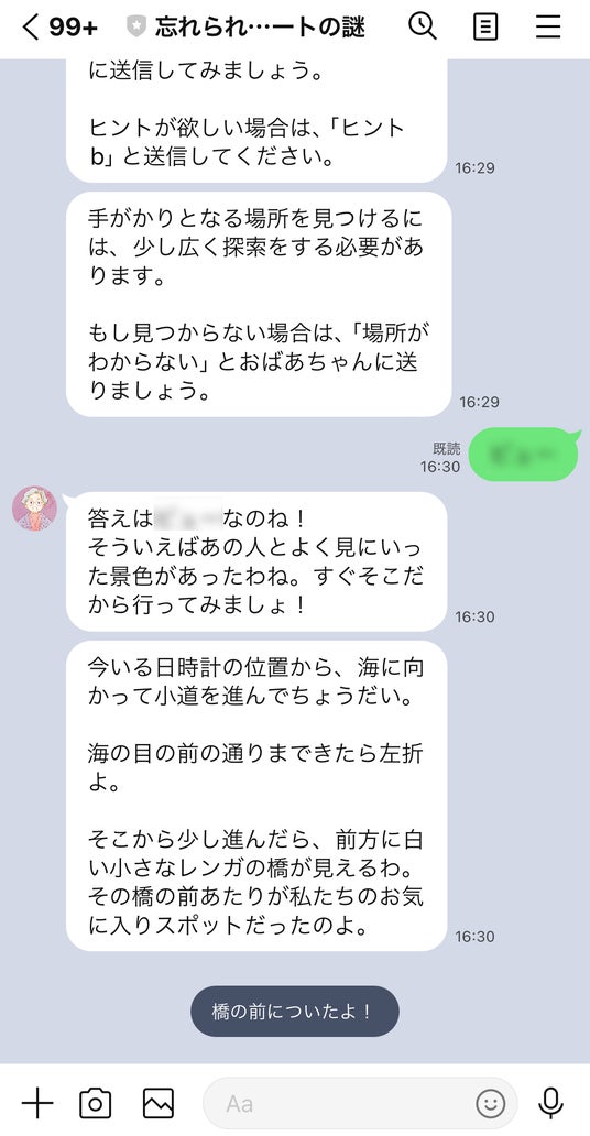 謎の答えはスマートフォンの「LINE」で入力すると、次の物語に進むことができます。