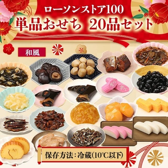 今回販売する「単品おせち20品セット」は、ローソンストア100で販売予定の全45品の中から蒲鉾や黒豆、栗きんとん、伊達巻、昆布巻など、バラエティ豊かなラインアップをご用意しました。