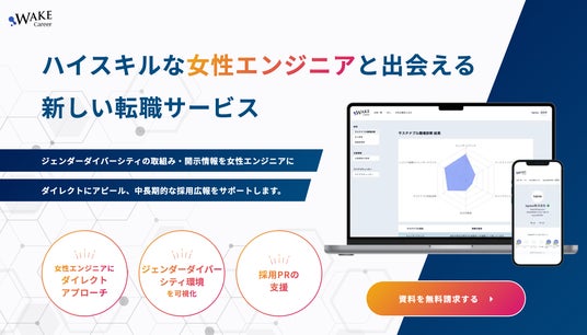 WAKE Career採用プラットフォームは、ハイスキルな女性エンジニアと出会える新しい転職サービスです。ジェンダーダイバーシティの取組み・開示情報を女性エンジニアへダイレクトにアピールし、中長期的な採用広報をサポートします。