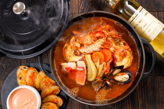 ブイヤベースはフランス料理のひとつ、南フランスプロヴァンス地方の地中海に面した港町、マルセイユの名物料理。地元の磯でとれる魚介類を香味野菜で煮込む海鮮料理であり、世界3大スープのひとつと称されています。
