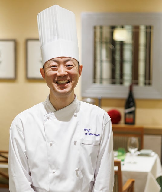 レストラン「ロワール」シェフ 渡邊 篤史宴会料理や婚礼料理など様々な現場で経験を積み重ね、2020年には、セルリアンタワー東急ホテルの福田総料理長のもとで研鑽を積み、2022年2月よりレストラン「ロワール」のシェフに就任。